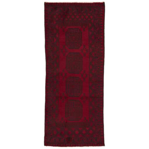 Aktscha rugs are knotted by Turkmens in the Aktscha (Acqcha) district, which is situated in the central part of the Jowzjan Province of northern Afghanistan. The Aktscha rugs are very similar to the Old Afghan (Khal Mohammadi) rugs, but are of a lower quality, as the knot density is lower. The rugs have the same characteristics, with the deep, warm, and fiery red base colour, the relatively high and sturdy pile, the wool base weave, and the use of goat’s and horse’s hair. The Gül (Elephant’s Foot) pattern is the primary pattern of the Aktscha rugs.