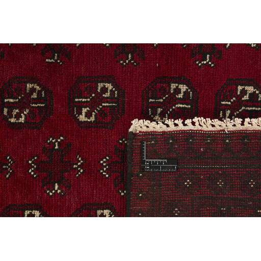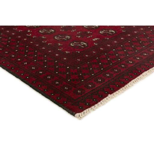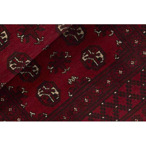 Aktscha rugs are knotted by Turkmens in the Aktscha (Acqcha) district, which is situated in the central part of the Jowzjan Province of northern Afghanistan. The Aktscha rugs are very similar to the Old Afghan (Khal Mohammadi) rugs, but are of a lower quality, as the knot density is lower. The rugs have the same characteristics, with the deep, warm, and fiery red base colour, the relatively high and sturdy pile, the wool base weave, and the use of goat’s and horse’s hair. The Gül (Elephant’s Foot) pattern is the primary pattern of the Aktscha rugs.