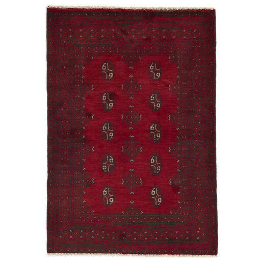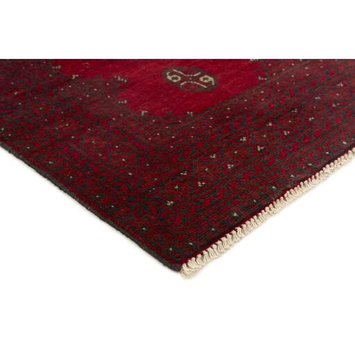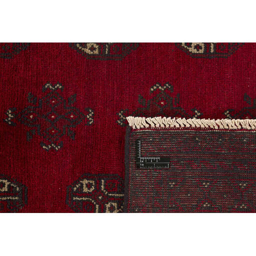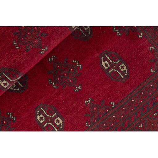 Aktscha rugs are knotted by Turkmens in the Aktscha (Acqcha) district, which is situated in the central part of the Jowzjan Province of northern Afghanistan. The Aktscha rugs are very similar to the Old Afghan (Khal Mohammadi) rugs, but are of a lower quality, as the knot density is lower. The rugs have the same characteristics, with the deep, warm, and fiery red base colour, the relatively high and sturdy pile, the wool base weave, and the use of goat’s and horse’s hair. The Gül (Elephant’s Foot) pattern is the primary pattern of the Aktscha rugs.
