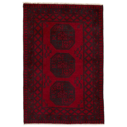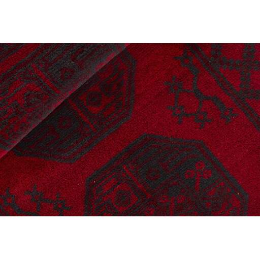 Aktscha rugs are knotted by Turkmens in the Aktscha (Acqcha) district, which is situated in the central part of the Jowzjan Province of northern Afghanistan. The Aktscha rugs are very similar to the Old Afghan (Khal Mohammadi) rugs, but are of a lower quality, as the knot density is lower. The rugs have the same characteristics, with the deep, warm, and fiery red base colour, the relatively high and sturdy pile, the wool base weave, and the use of goat’s and horse’s hair. The Gül (Elephant’s Foot) pattern is the primary pattern of the Aktscha rugs.