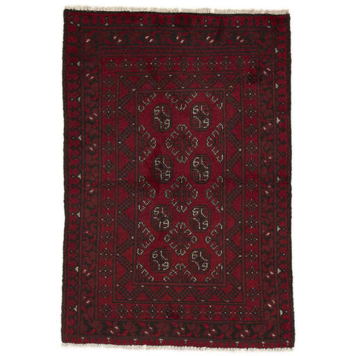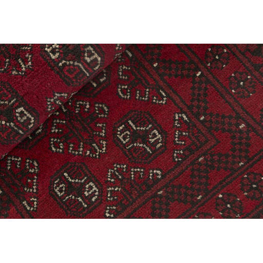 Aktscha rugs are knotted by Turkmens in the Aktscha (Acqcha) district, which is situated in the central part of the Jowzjan Province of northern Afghanistan. The Aktscha rugs are very similar to the Old Afghan (Khal Mohammadi) rugs, but are of a lower quality, as the knot density is lower. The rugs have the same characteristics, with the deep, warm, and fiery red base colour, the relatively high and sturdy pile, the wool base weave, and the use of goat’s and horse’s hair. The Gül (Elephant’s Foot) pattern is the primary pattern of the Aktscha rugs.