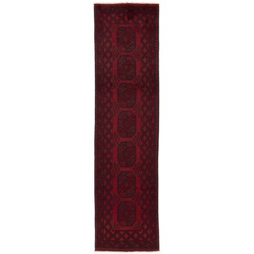 Aktscha rugs are knotted by Turkmens in the Aktscha (Acqcha) district, which is situated in the central part of the Jowzjan Province of northern Afghanistan. The Aktscha rugs are very similar to the Old Afghan (Khal Mohammadi) rugs, but are of a lower quality, as the knot density is lower. The rugs have the same characteristics, with the deep, warm, and fiery red base colour, the relatively high and sturdy pile, the wool base weave, and the use of goat’s and horse’s hair. The Gül (Elephant’s Foot) pattern is the primary pattern of the Aktscha rugs.
