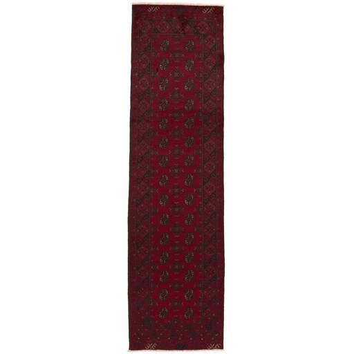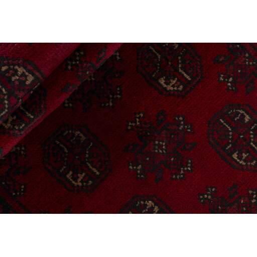 Aktscha rugs are knotted by Turkmens in the Aktscha (Acqcha) district, which is situated in the central part of the Jowzjan Province of northern Afghanistan. The Aktscha rugs are very similar to the Old Afghan (Khal Mohammadi) rugs, but are of a lower quality, as the knot density is lower. The rugs have the same characteristics, with the deep, warm, and fiery red base colour, the relatively high and sturdy pile, the wool base weave, and the use of goat’s and horse’s hair. The Gül (Elephant’s Foot) pattern is the primary pattern of the Aktscha rugs.