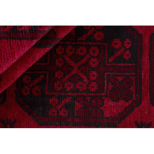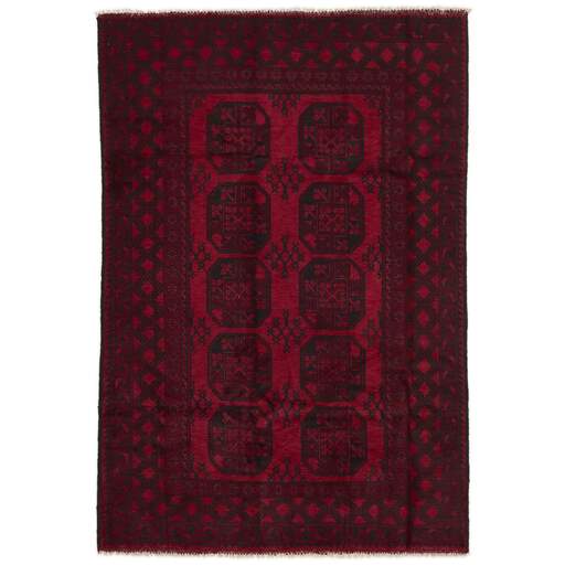 Aktscha rugs are knotted by Turkmens in the Aktscha (Acqcha) district, which is situated in the central part of the Jowzjan Province of northern Afghanistan. The Aktscha rugs are very similar to the Old Afghan (Khal Mohammadi) rugs, but are of a lower quality, as the knot density is lower. The rugs have the same characteristics, with the deep, warm, and fiery red base colour, the relatively high and sturdy pile, the wool base weave, and the use of goat’s and horse’s hair. The Gül (Elephant’s Foot) pattern is the primary pattern of the Aktscha rugs.
