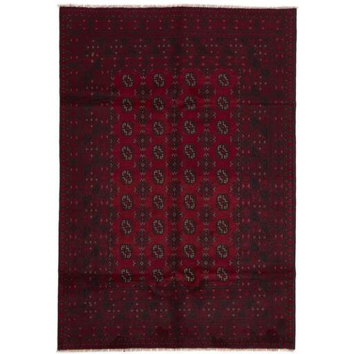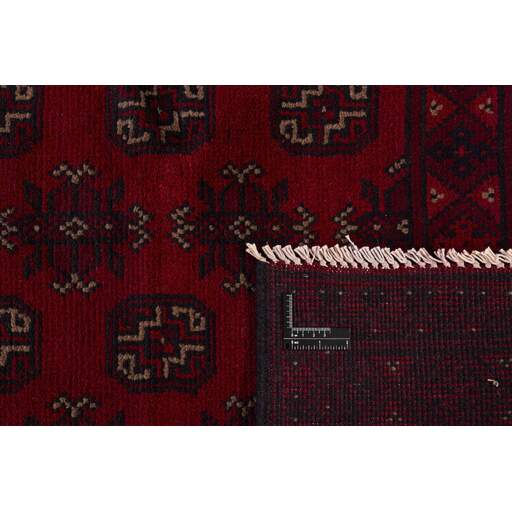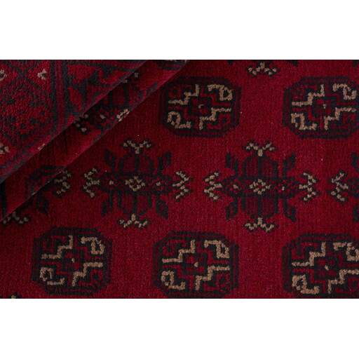 Aktscha rugs are knotted by Turkmens in the Aktscha (Acqcha) district, which is situated in the central part of the Jowzjan Province of northern Afghanistan. The Aktscha rugs are very similar to the Old Afghan (Khal Mohammadi) rugs, but are of a lower quality, as the knot density is lower. The rugs have the same characteristics, with the deep, warm, and fiery red base colour, the relatively high and sturdy pile, the wool base weave, and the use of goat’s and horse’s hair. The Gül (Elephant’s Foot) pattern is the primary pattern of the Aktscha rugs.
