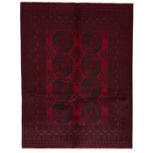 Aktscha rugs are knotted by Turkmens in the Aktscha (Acqcha) district, which is situated in the central part of the Jowzjan Province of northern Afghanistan. The Aktscha rugs are very similar to the Old Afghan (Khal Mohammadi) rugs, but are of a lower quality, as the knot density is lower. The rugs have the same characteristics, with the deep, warm, and fiery red base colour, the relatively high and sturdy pile, the wool base weave, and the use of goat’s and horse’s hair. The Gül (Elephant’s Foot) pattern is the primary pattern of the Aktscha rugs.