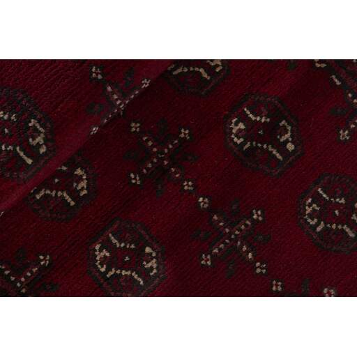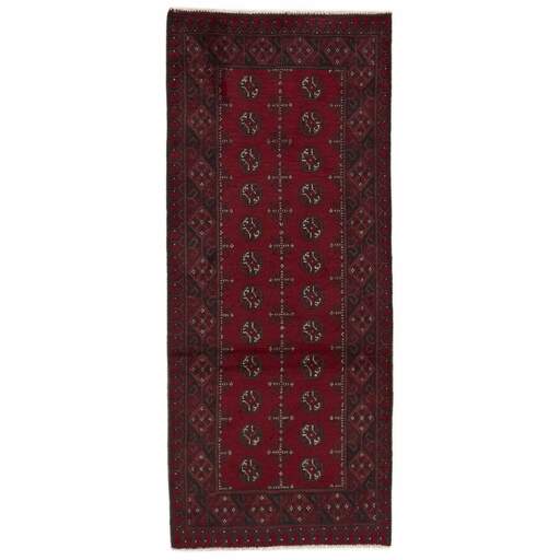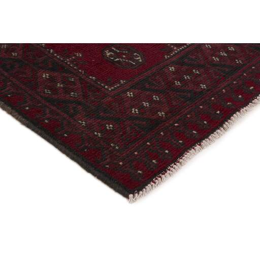 Aktscha rugs are knotted by Turkmens in the Aktscha (Acqcha) district, which is situated in the central part of the Jowzjan Province of northern Afghanistan. The Aktscha rugs are very similar to the Old Afghan (Khal Mohammadi) rugs, but are of a lower quality, as the knot density is lower. The rugs have the same characteristics, with the deep, warm, and fiery red base colour, the relatively high and sturdy pile, the wool base weave, and the use of goat’s and horse’s hair. The Gül (Elephant’s Foot) pattern is the primary pattern of the Aktscha rugs.