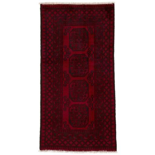 Aktscha rugs are knotted by Turkmens in the Aktscha (Acqcha) district, which is situated in the central part of the Jowzjan Province of northern Afghanistan. The Aktscha rugs are very similar to the Old Afghan (Khal Mohammadi) rugs, but are of a lower quality, as the knot density is lower. The rugs have the same characteristics, with the deep, warm, and fiery red base colour, the relatively high and sturdy pile, the wool base weave, and the use of goat’s and horse’s hair. The Gül (Elephant’s Foot) pattern is the primary pattern of the Aktscha rugs.