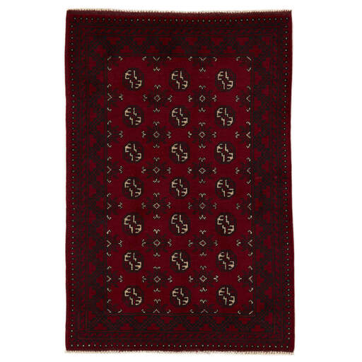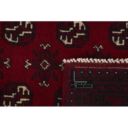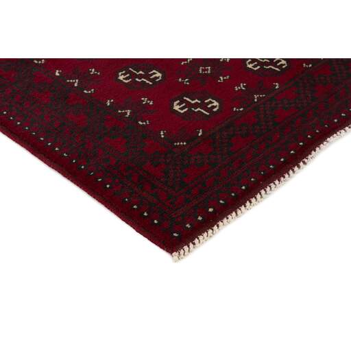 Aktscha rugs are knotted by Turkmens in the Aktscha (Acqcha) district, which is situated in the central part of the Jowzjan Province of northern Afghanistan. The Aktscha rugs are very similar to the Old Afghan (Khal Mohammadi) rugs, but are of a lower quality, as the knot density is lower. The rugs have the same characteristics, with the deep, warm, and fiery red base colour, the relatively high and sturdy pile, the wool base weave, and the use of goat’s and horse’s hair. The Gül (Elephant’s Foot) pattern is the primary pattern of the Aktscha rugs.