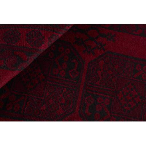 Aktscha rugs are knotted by Turkmens in the Aktscha (Acqcha) district, which is situated in the central part of the Jowzjan Province of northern Afghanistan. The Aktscha rugs are very similar to the Old Afghan (Khal Mohammadi) rugs, but are of a lower quality, as the knot density is lower. The rugs have the same characteristics, with the deep, warm, and fiery red base colour, the relatively high and sturdy pile, the wool base weave, and the use of goat’s and horse’s hair. The Gül (Elephant’s Foot) pattern is the primary pattern of the Aktscha rugs.
