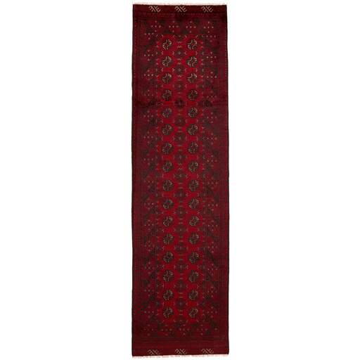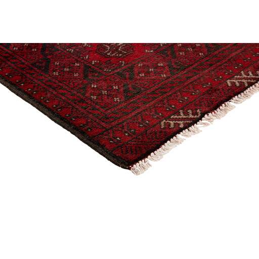 Aktscha rugs are knotted by Turkmens in the Aktscha (Acqcha) district, which is situated in the central part of the Jowzjan Province of northern Afghanistan. The Aktscha rugs are very similar to the Old Afghan (Khal Mohammadi) rugs, but are of a lower quality, as the knot density is lower. The rugs have the same characteristics, with the deep, warm, and fiery red base colour, the relatively high and sturdy pile, the wool base weave, and the use of goat’s and horse’s hair. The Gül (Elephant’s Foot) pattern is the primary pattern of the Aktscha rugs.