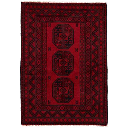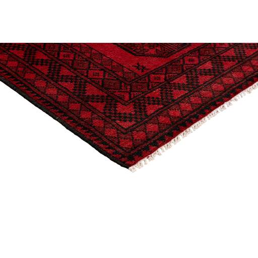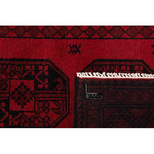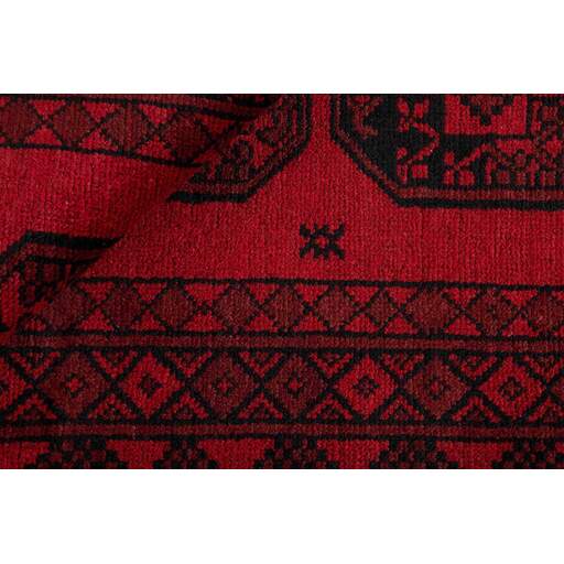 Aktscha rugs are knotted by Turkmens in the Aktscha (Acqcha) district, which is situated in the central part of the Jowzjan Province of northern Afghanistan. The Aktscha rugs are very similar to the Old Afghan (Khal Mohammadi) rugs, but are of a lower quality, as the knot density is lower. The rugs have the same characteristics, with the deep, warm, and fiery red base colour, the relatively high and sturdy pile, the wool base weave, and the use of goat’s and horse’s hair. The Gül (Elephant’s Foot) pattern is the primary pattern of the Aktscha rugs.