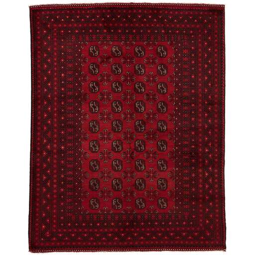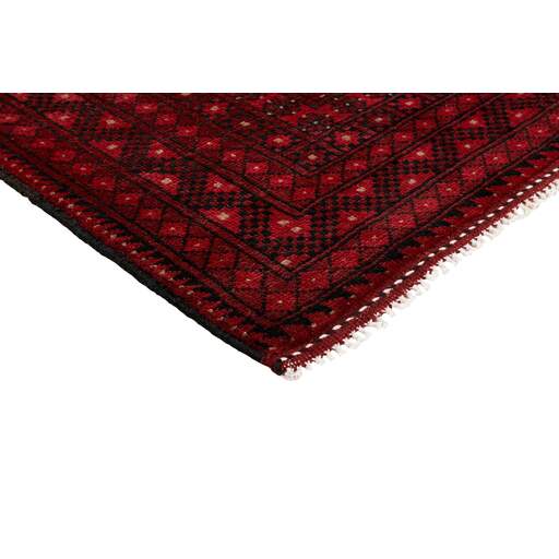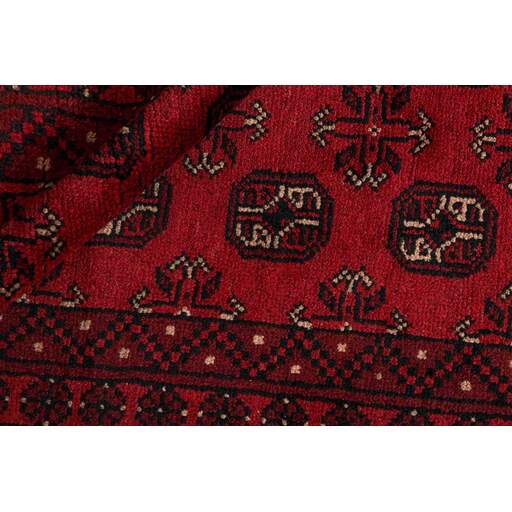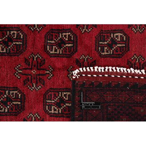Aktscha rugs are knotted by Turkmens in the Aktscha (Acqcha) district, which is situated in the central part of the Jowzjan Province of northern Afghanistan. The Aktscha rugs are very similar to the Old Afghan (Khal Mohammadi) rugs, but are of a lower quality, as the knot density is lower. The rugs have the same characteristics, with the deep, warm, and fiery red base colour, the relatively high and sturdy pile, the wool base weave, and the use of goat’s and horse’s hair. The Gül (Elephant’s Foot) pattern is the primary pattern of the Aktscha rugs.