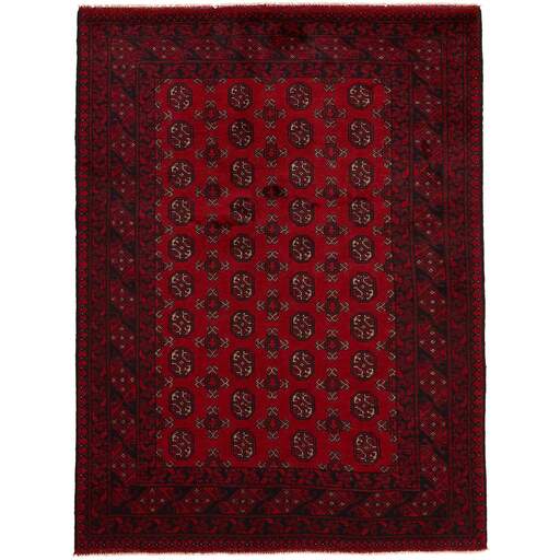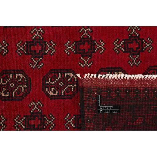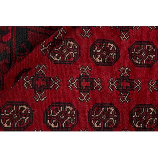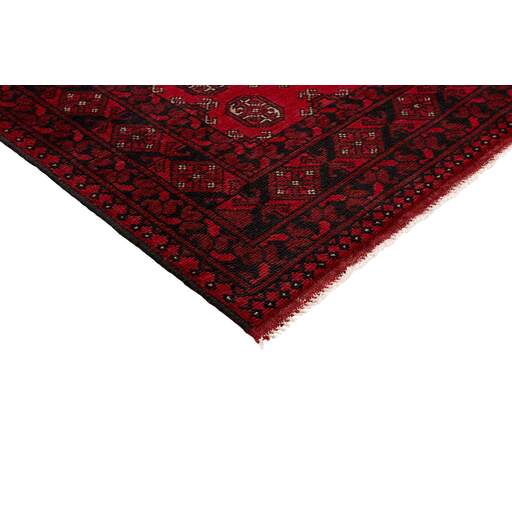 Aktscha rugs are knotted by Turkmens in the Aktscha (Acqcha) district, which is situated in the central part of the Jowzjan Province of northern Afghanistan. The Aktscha rugs are very similar to the Old Afghan (Khal Mohammadi) rugs, but are of a lower quality, as the knot density is lower. The rugs have the same characteristics, with the deep, warm, and fiery red base colour, the relatively high and sturdy pile, the wool base weave, and the use of goat’s and horse’s hair. The Gül (Elephant’s Foot) pattern is the primary pattern of the Aktscha rugs.