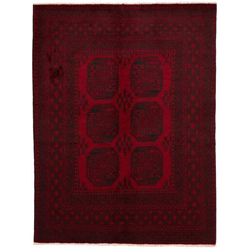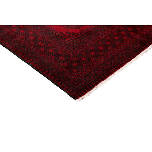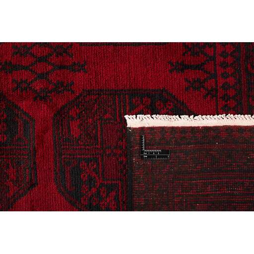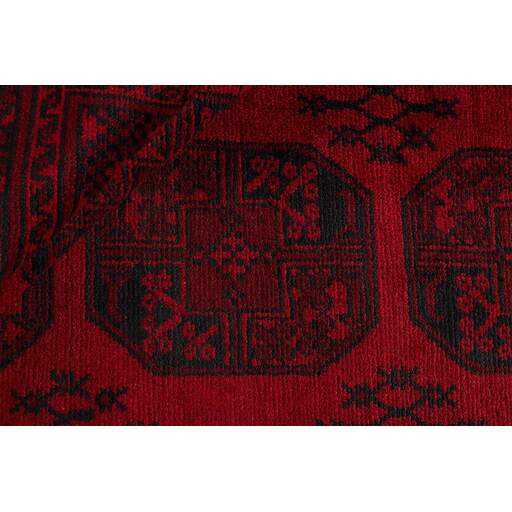 Aktscha rugs are knotted by Turkmens in the Aktscha (Acqcha) district, which is situated in the central part of the Jowzjan Province of northern Afghanistan. The Aktscha rugs are very similar to the Old Afghan (Khal Mohammadi) rugs, but are of a lower quality, as the knot density is lower. The rugs have the same characteristics, with the deep, warm, and fiery red base colour, the relatively high and sturdy pile, the wool base weave, and the use of goat’s and horse’s hair. The Gül (Elephant’s Foot) pattern is the primary pattern of the Aktscha rugs.