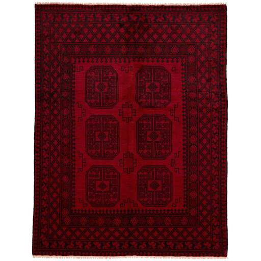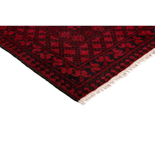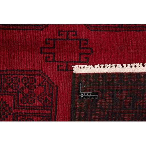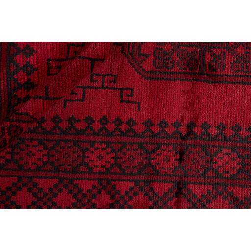 Aktscha rugs are knotted by Turkmens in the Aktscha (Acqcha) district, which is situated in the central part of the Jowzjan Province of northern Afghanistan. The Aktscha rugs are very similar to the Old Afghan (Khal Mohammadi) rugs, but are of a lower quality, as the knot density is lower. The rugs have the same characteristics, with the deep, warm, and fiery red base colour, the relatively high and sturdy pile, the wool base weave, and the use of goat’s and horse’s hair. The Gül (Elephant’s Foot) pattern is the primary pattern of the Aktscha rugs.