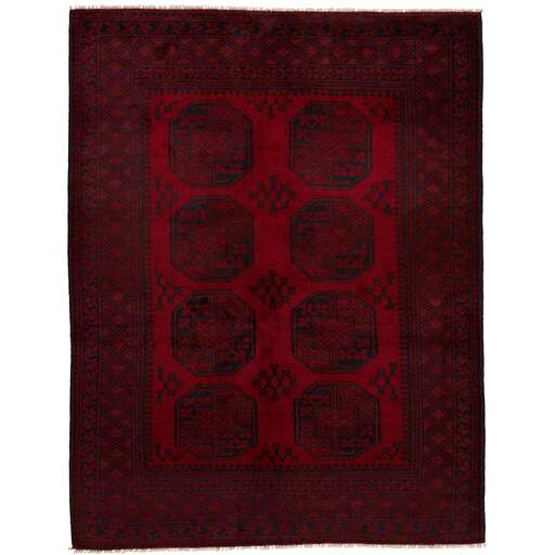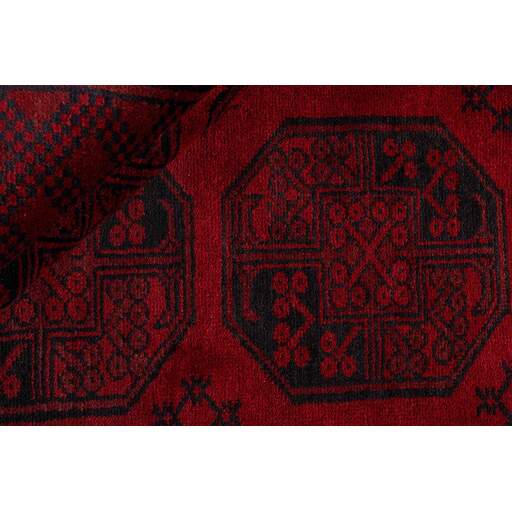 Aktscha rugs are knotted by Turkmens in the Aktscha (Acqcha) district, which is situated in the central part of the Jowzjan Province of northern Afghanistan. The Aktscha rugs are very similar to the Old Afghan (Khal Mohammadi) rugs, but are of a lower quality, as the knot density is lower. The rugs have the same characteristics, with the deep, warm, and fiery red base colour, the relatively high and sturdy pile, the wool base weave, and the use of goat’s and horse’s hair. The Gül (Elephant’s Foot) pattern is the primary pattern of the Aktscha rugs.