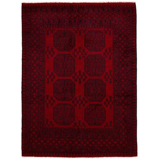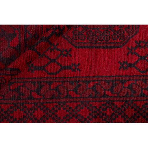 Aktscha rugs are knotted by Turkmens in the Aktscha (Acqcha) district, which is situated in the central part of the Jowzjan Province of northern Afghanistan. The Aktscha rugs are very similar to the Old Afghan (Khal Mohammadi) rugs, but are of a lower quality, as the knot density is lower. The rugs have the same characteristics, with the deep, warm, and fiery red base colour, the relatively high and sturdy pile, the wool base weave, and the use of goat’s and horse’s hair. The Gül (Elephant’s Foot) pattern is the primary pattern of the Aktscha rugs.