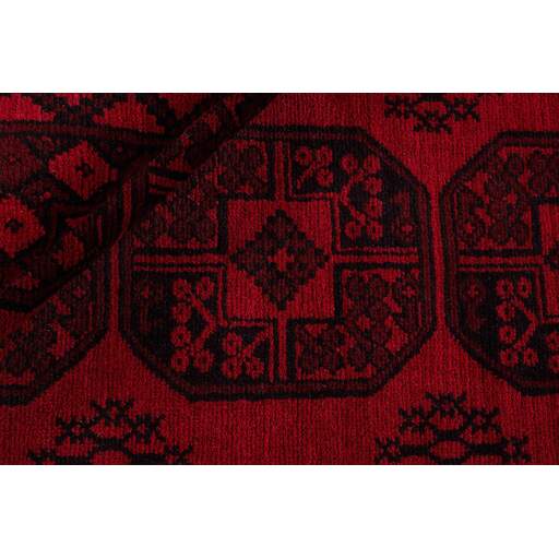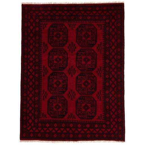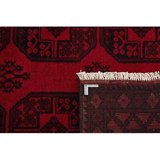 Aktscha rugs are knotted by Turkmens in the Aktscha (Acqcha) district, which is situated in the central part of the Jowzjan Province of northern Afghanistan. The Aktscha rugs are very similar to the Old Afghan (Khal Mohammadi) rugs, but are of a lower quality, as the knot density is lower. The rugs have the same characteristics, with the deep, warm, and fiery red base colour, the relatively high and sturdy pile, the wool base weave, and the use of goat’s and horse’s hair. The Gül (Elephant’s Foot) pattern is the primary pattern of the Aktscha rugs.