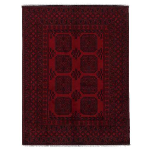 Aktscha rugs are knotted by Turkmens in the Aktscha (Acqcha) district, which is situated in the central part of the Jowzjan Province of northern Afghanistan. The Aktscha rugs are very similar to the Old Afghan (Khal Mohammadi) rugs, but are of a lower quality, as the knot density is lower. The rugs have the same characteristics, with the deep, warm, and fiery red base colour, the relatively high and sturdy pile, the wool base weave, and the use of goat’s and horse’s hair. The Gül (Elephant’s Foot) pattern is the primary pattern of the Aktscha rugs.