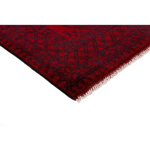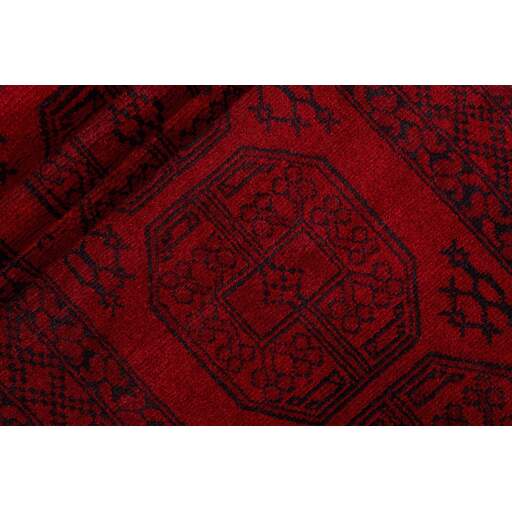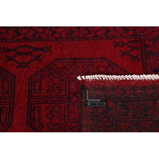 Aktscha rugs are knotted by Turkmens in the Aktscha (Acqcha) district, which is situated in the central part of the Jowzjan Province of northern Afghanistan. The Aktscha rugs are very similar to the Old Afghan (Khal Mohammadi) rugs, but are of a lower quality, as the knot density is lower. The rugs have the same characteristics, with the deep, warm, and fiery red base colour, the relatively high and sturdy pile, the wool base weave, and the use of goat’s and horse’s hair. The Gül (Elephant’s Foot) pattern is the primary pattern of the Aktscha rugs.