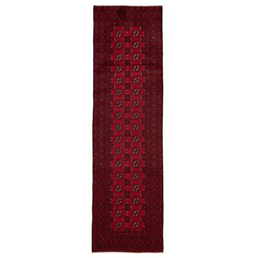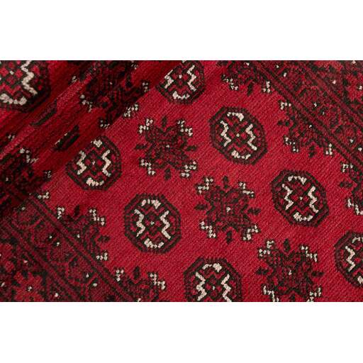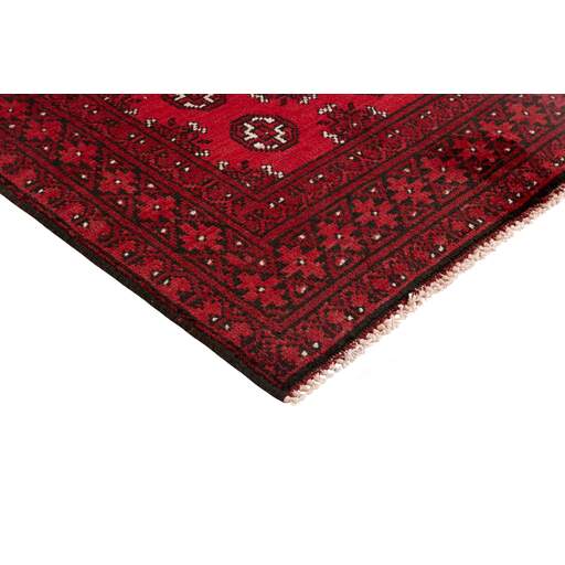 Aktscha rugs are knotted by Turkmens in the Aktscha (Acqcha) district, which is situated in the central part of the Jowzjan Province of northern Afghanistan. The Aktscha rugs are very similar to the Old Afghan (Khal Mohammadi) rugs, but are of a lower quality, as the knot density is lower. The rugs have the same characteristics, with the deep, warm, and fiery red base colour, the relatively high and sturdy pile, the wool base weave, and the use of goat’s and horse’s hair. The Gül (Elephant’s Foot) pattern is the primary pattern of the Aktscha rugs.