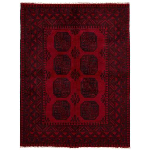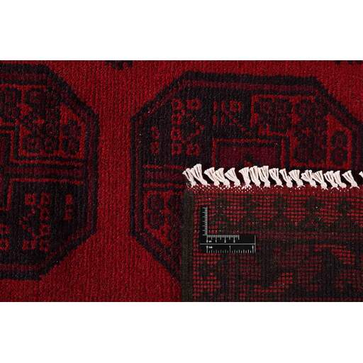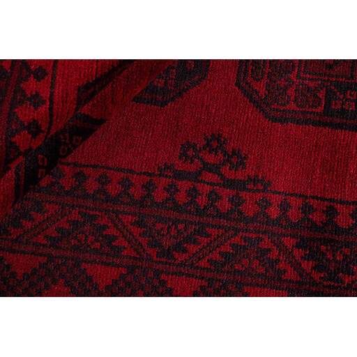 Aktscha rugs are knotted by Turkmens in the Aktscha (Acqcha) district, which is situated in the central part of the Jowzjan Province of northern Afghanistan. The Aktscha rugs are very similar to the Old Afghan (Khal Mohammadi) rugs, but are of a lower quality, as the knot density is lower. The rugs have the same characteristics, with the deep, warm, and fiery red base colour, the relatively high and sturdy pile, the wool base weave, and the use of goat’s and horse’s hair. The Gül (Elephant’s Foot) pattern is the primary pattern of the Aktscha rugs.