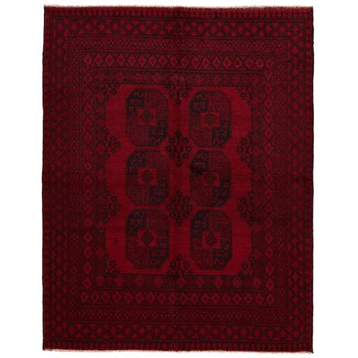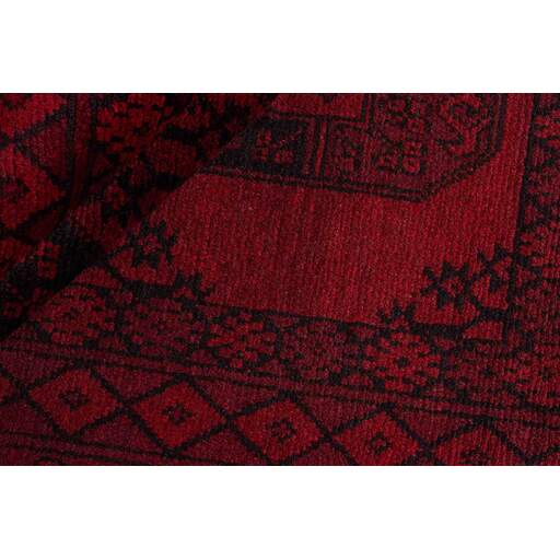 Aktscha rugs are knotted by Turkmens in the Aktscha (Acqcha) district, which is situated in the central part of the Jowzjan Province of northern Afghanistan. The Aktscha rugs are very similar to the Old Afghan (Khal Mohammadi) rugs, but are of a lower quality, as the knot density is lower. The rugs have the same characteristics, with the deep, warm, and fiery red base colour, the relatively high and sturdy pile, the wool base weave, and the use of goat’s and horse’s hair. The Gül (Elephant’s Foot) pattern is the primary pattern of the Aktscha rugs.
