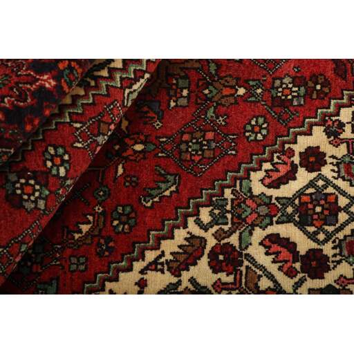 This rug is knotted in the Zandjan district, by Kurdish nomads and their descendants. Goltoughs are high quality rugs similar to the classical Bidjars. The compact structure is achieved through a technique where the double warp is “tapped” particularly hard. The patterns are typically a fine hexagram in the centre, encircled by stylised flowers, leaves, and animals. The colours are often beige, red, and brown.