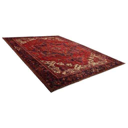 Heriz rugs are Persian rugs from the area of Heris, East Azerbaijan in northwest Iran, northeast of Tabriz. Such rugs are produced in the village of the same name in the slopes of Mount Sabalan. Heriz carpets are durable and hard-wearing and they can last for generations. 19th century examples of such carpets are often found on sale by major auction houses in United States and Europe. Part of the reason for the toughness of Heriz carpets is that Mount Sabalan sits on a major deposit of copper. Traces of copper in the drinking water of sheep produces high quality wool that is far more resilient than wool from other areas. The Heriz Carpet is the only carpet in the world where stories of the Old times are woven. Heriz rug weavers often make them in geometric, bold patterns with a large medallion dominating the field. Such designs are traditional and often woven from memory. Similar rugs from the neighbouring towns and villages of the Heriz region are Afshar, Mehraban, Sarab, Bakhshaish, and Gorevan. The grades of these rugs are primarily based on village name. Serapis, for example, have been considered the finest grade of Heriz since the beginning of the 20th century.