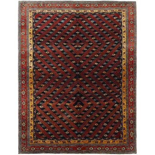 The Kashkulis are a subtribe of the Kashghai tribe in southern Persia, and they are generally regarded as the best rug knotters. The knotting is exquisite for a tribal standard, where wefts of cotton or silk can be found. The pile is always wool, and mostly small sizes are produced. A wide range of patterns can be seen, but the most characteristic is an adaptation of the classical Herati or fish pattern, and a prayer arch pattern with cypress trees on either side. A wide range of colours is used.