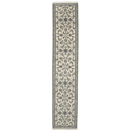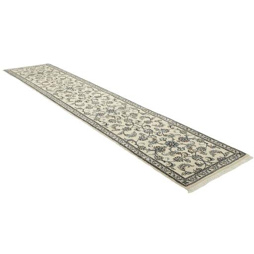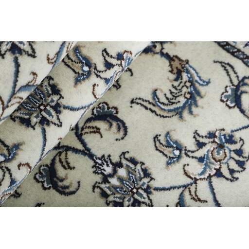 Nain is a city of about 50.000 people, located in the Isfahan Province. It has historic significance, since it was the last stop on caravan routes before Kavir-a-Lut, one of the deserts that stretch through the centre of Iran. The Nain Mosque is one of Iran’s oldest, and is built far better than the later and more famous mosques of Isfahan. The industry in Nain was traditionally focused on the production of wool garments, but the weavers switched to rug production when the demand fell. Their new products soon became famous, as the weavers were skilled and used good quality materials. The warp and weft are cotton, with a wool pile and contours of silk. Sometimes, silk is used more in the base. The colours are refined; nuances of ivory and cream, with small areas of red, green, and blue. As with the rugs from Isfahan, the patterns of the Nain rugs are also classical. The Nain rugs are made in all sizes, including the very large of up to 60m2, and some of these have a pure silk pile. The largest Nain rug produced was 20 by 20 metres.