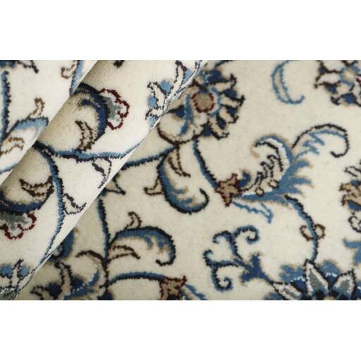 Nain is a city of about 50.000 people, located in the Isfahan Province. It has historic significance, since it was the last stop on caravan routes before Kavir-a-Lut, one of the deserts that stretch through the centre of Iran. The Nain Mosque is one of Iran’s oldest, and is built far better than the later and more famous mosques of Isfahan. The industry in Nain was traditionally focused on the production of wool garments, but the weavers switched to rug production when the demand fell. Their new products soon became famous, as the weavers were skilled and used good quality materials. The warp and weft are cotton, with a wool pile and contours of silk. Sometimes, silk is used more in the base. The colours are refined; nuances of ivory and cream, with small areas of red, green, and blue. As with the rugs from Isfahan, the patterns of the Nain rugs are also classical. The Nain rugs are made in all sizes, including the very large of up to 60m2, and some of these have a pure silk pile. The largest Nain rug produced was 20 by 20 metres.