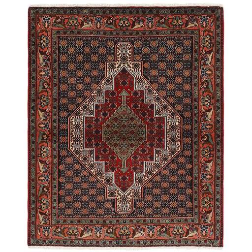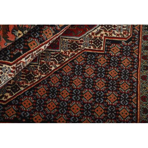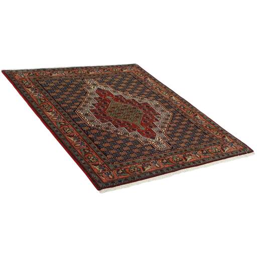 Seneh in Sanadaj is the capitol of the Kurdistan province of north-western Iran, and has about 300.000 inhabitants, most of them Kurds from the Gurani Tribe. Seneh rugs are easily recognisable by their knotting method, as well as the pattern colours and wool used. They usually have a simple weft, and the back of the rugs is often coarse and grainy, as the wool is spun tightly by hand before the knotting. Sometimes, a firm Bidjar-like knotting can be seen. Characteristically, the colours are deep blue, green, dark red, and white. Seneh wool is among the best qualities of wool in Iran: firm and durable, with a deep glow, a result of the high altitude, the sparse vegetation, and extremes in temperature. The tribal knotters in the area use the same type of wool. In the 19th century, Seneh rugs were famous for their fineness and the variation in patterns, while the modern production is less fine and not as varied. The Ghiordis knot is usually used, but you will also encounter rugs from Seneh with the Seneh knot. The typical Seneh rug has a Herati pattern field, with a series of geometrical medallions, one inside the other, each repeating the pattern with a different ground colour. Sometimes, the older, more uniform patterns are seen: Boteh, Vekili, Gol-Farang (naturalistic, European style bundles of flowers) or Gol-i-Bulbul (birds and flowers).