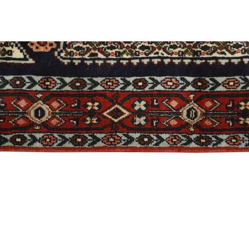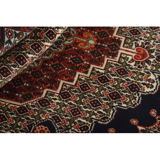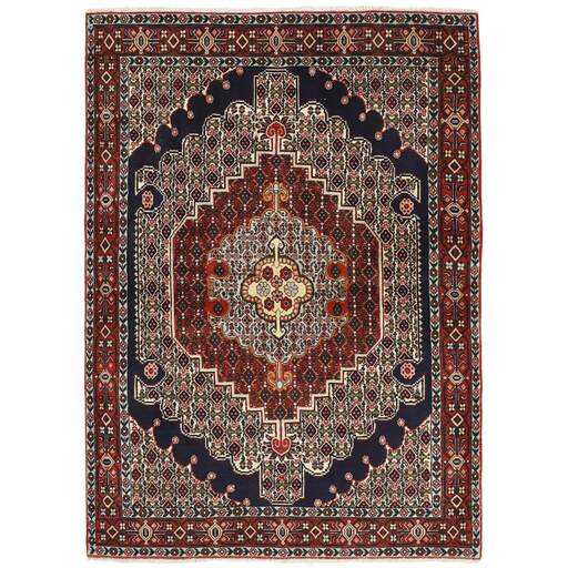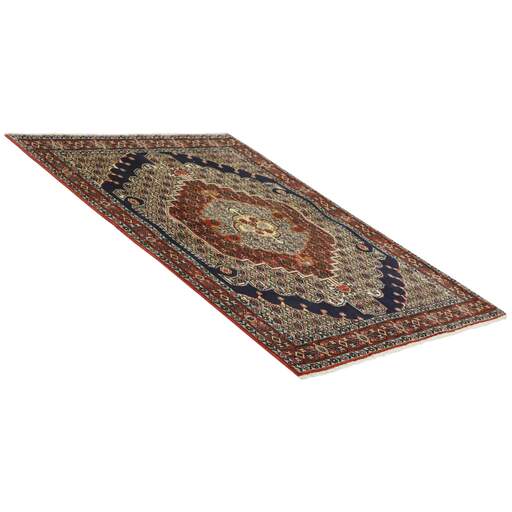 Seneh in Sanadaj is the capitol of the Kurdistan province of north-western Iran, and has about 300.000 inhabitants, most of them Kurds from the Gurani Tribe. Seneh rugs are easily recognisable by their knotting method, as well as the pattern colours and wool used. They usually have a simple weft, and the back of the rugs is often coarse and grainy, as the wool is spun tightly by hand before the knotting. Sometimes, a firm Bidjar-like knotting can be seen. Characteristically, the colours are deep blue, green, dark red, and white. Seneh wool is among the best qualities of wool in Iran: firm and durable, with a deep glow, a result of the high altitude, the sparse vegetation, and extremes in temperature. The tribal knotters in the area use the same type of wool. In the 19th century, Seneh rugs were famous for their fineness and the variation in patterns, while the modern production is less fine and not as varied. The Ghiordis knot is usually used, but you will also encounter rugs from Seneh with the Seneh knot. The typical Seneh rug has a Herati pattern field, with a series of geometrical medallions, one inside the other, each repeating the pattern with a different ground colour. Sometimes, the older, more uniform patterns are seen: Boteh, Vekili, Gol-Farang (naturalistic, European style bundles of flowers) or Gol-i-Bulbul (birds and flowers).