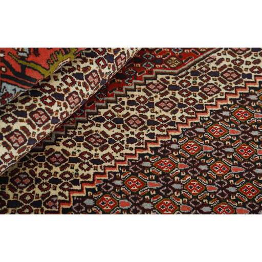 Seneh in Sanadaj is the capitol of the Kurdistan province of north-western Iran, and has about 300.000 inhabitants, most of them Kurds from the Gurani Tribe. Seneh rugs are easily recognisable by their knotting method, as well as the pattern colours and wool used. They usually have a simple weft, and the back of the rugs is often coarse and grainy, as the wool is spun tightly by hand before the knotting. Sometimes, a firm Bidjar-like knotting can be seen. Characteristically, the colours are deep blue, green, dark red, and white. Seneh wool is among the best qualities of wool in Iran: firm and durable, with a deep glow, a result of the high altitude, the sparse vegetation, and extremes in temperature. The tribal knotters in the area use the same type of wool. In the 19th century, Seneh rugs were famous for their fineness and the variation in patterns, while the modern production is less fine and not as varied. The Ghiordis knot is usually used, but you will also encounter rugs from Seneh with the Seneh knot. The typical Seneh rug has a Herati pattern field, with a series of geometrical medallions, one inside the other, each repeating the pattern with a different ground colour. Sometimes, the older, more uniform patterns are seen: Boteh, Vekili, Gol-Farang (naturalistic, European style bundles of flowers) or Gol-i-Bulbul (birds and flowers).