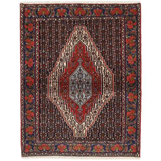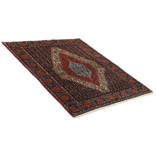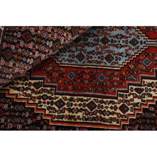 Seneh in Sanadaj is the capitol of the Kurdistan province of north-western Iran, and has about 300.000 inhabitants, most of them Kurds from the Gurani Tribe. Seneh rugs are easily recognisable by their knotting method, as well as the pattern colours and wool used. They usually have a simple weft, and the back of the rugs is often coarse and grainy, as the wool is spun tightly by hand before the knotting. Sometimes, a firm Bidjar-like knotting can be seen. Characteristically, the colours are deep blue, green, dark red, and white. Seneh wool is among the best qualities of wool in Iran: firm and durable, with a deep glow, a result of the high altitude, the sparse vegetation, and extremes in temperature. The tribal knotters in the area use the same type of wool. In the 19th century, Seneh rugs were famous for their fineness and the variation in patterns, while the modern production is less fine and not as varied. The Ghiordis knot is usually used, but you will also encounter rugs from Seneh with the Seneh knot. The typical Seneh rug has a Herati pattern field, with a series of geometrical medallions, one inside the other, each repeating the pattern with a different ground colour. Sometimes, the older, more uniform patterns are seen: Boteh, Vekili, Gol-Farang (naturalistic, European style bundles of flowers) or Gol-i-Bulbul (birds and flowers).