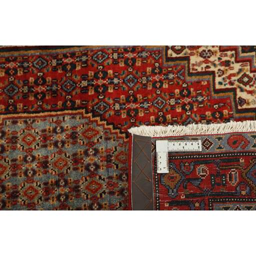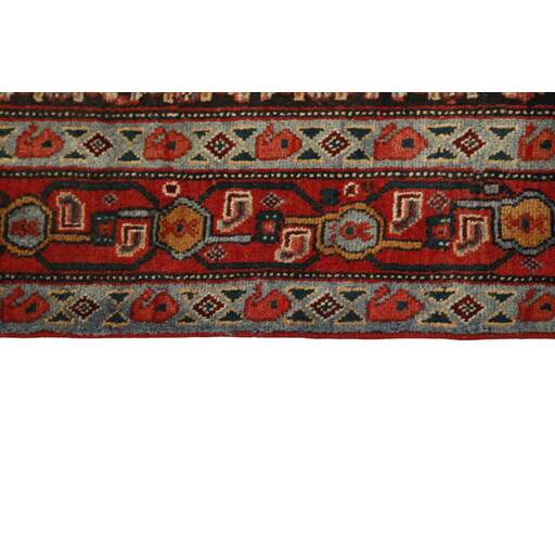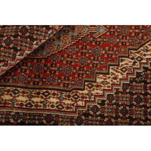 Seneh in Sanadaj is the capitol of the Kurdistan province of north-western Iran, and has about 300.000 inhabitants, most of them Kurds from the Gurani Tribe. Seneh rugs are easily recognisable by their knotting method, as well as the pattern colours and wool used. They usually have a simple weft, and the back of the rugs is often coarse and grainy, as the wool is spun tightly by hand before the knotting. Sometimes, a firm Bidjar-like knotting can be seen. Characteristically, the colours are deep blue, green, dark red, and white. Seneh wool is among the best qualities of wool in Iran: firm and durable, with a deep glow, a result of the high altitude, the sparse vegetation, and extremes in temperature. The tribal knotters in the area use the same type of wool. In the 19th century, Seneh rugs were famous for their fineness and the variation in patterns, while the modern production is less fine and not as varied. The Ghiordis knot is usually used, but you will also encounter rugs from Seneh with the Seneh knot. The typical Seneh rug has a Herati pattern field, with a series of geometrical medallions, one inside the other, each repeating the pattern with a different ground colour. Sometimes, the older, more uniform patterns are seen: Boteh, Vekili, Gol-Farang (naturalistic, European style bundles of flowers) or Gol-i-Bulbul (birds and flowers).