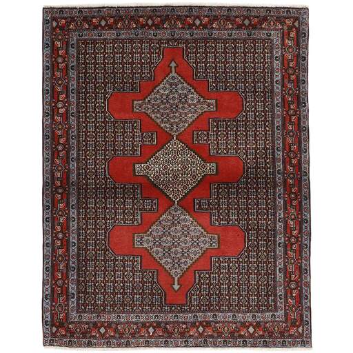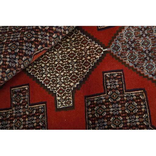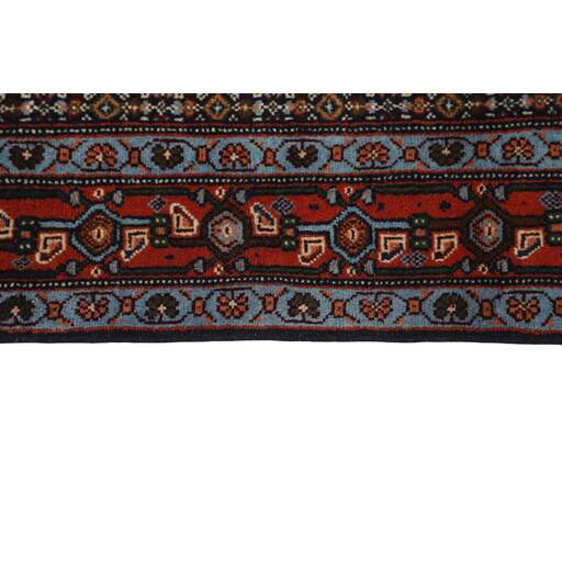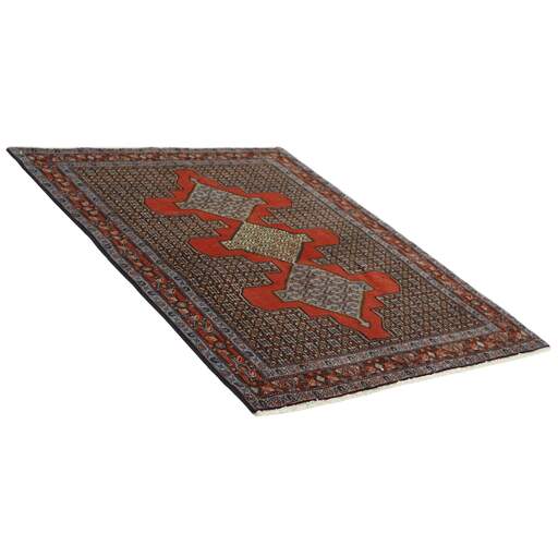 Seneh in Sanadaj is the capitol of the Kurdistan province of north-western Iran, and has about 300.000 inhabitants, most of them Kurds from the Gurani Tribe. Seneh rugs are easily recognisable by their knotting method, as well as the pattern colours and wool used. They usually have a simple weft, and the back of the rugs is often coarse and grainy, as the wool is spun tightly by hand before the knotting. Sometimes, a firm Bidjar-like knotting can be seen. Characteristically, the colours are deep blue, green, dark red, and white. Seneh wool is among the best qualities of wool in Iran: firm and durable, with a deep glow, a result of the high altitude, the sparse vegetation, and extremes in temperature. The tribal knotters in the area use the same type of wool. In the 19th century, Seneh rugs were famous for their fineness and the variation in patterns, while the modern production is less fine and not as varied. The Ghiordis knot is usually used, but you will also encounter rugs from Seneh with the Seneh knot. The typical Seneh rug has a Herati pattern field, with a series of geometrical medallions, one inside the other, each repeating the pattern with a different ground colour. Sometimes, the older, more uniform patterns are seen: Boteh, Vekili, Gol-Farang (naturalistic, European style bundles of flowers) or Gol-i-Bulbul (birds and flowers).