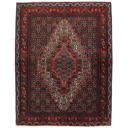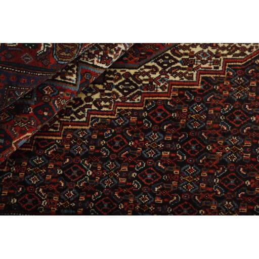 Seneh in Sanadaj is the capitol of the Kurdistan province of north-western Iran, and has about 300.000 inhabitants, most of them Kurds from the Gurani Tribe. Seneh rugs are easily recognisable by their knotting method, as well as the pattern colours and wool used. They usually have a simple weft, and the back of the rugs is often coarse and grainy, as the wool is spun tightly by hand before the knotting. Sometimes, a firm Bidjar-like knotting can be seen. Characteristically, the colours are deep blue, green, dark red, and white. Seneh wool is among the best qualities of wool in Iran: firm and durable, with a deep glow, a result of the high altitude, the sparse vegetation, and extremes in temperature. The tribal knotters in the area use the same type of wool. In the 19th century, Seneh rugs were famous for their fineness and the variation in patterns, while the modern production is less fine and not as varied. The Ghiordis knot is usually used, but you will also encounter rugs from Seneh with the Seneh knot. The typical Seneh rug has a Herati pattern field, with a series of geometrical medallions, one inside the other, each repeating the pattern with a different ground colour. Sometimes, the older, more uniform patterns are seen: Boteh, Vekili, Gol-Farang (naturalistic, European style bundles of flowers) or Gol-i-Bulbul (birds and flowers).