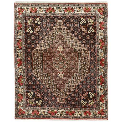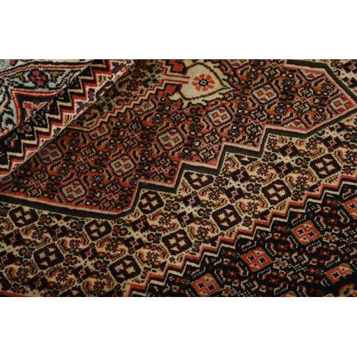 Seneh in Sanadaj is the capitol of the Kurdistan province of north-western Iran, and has about 300.000 inhabitants, most of them Kurds from the Gurani Tribe. Seneh rugs are easily recognisable by their knotting method, as well as the pattern colours and wool used. They usually have a simple weft, and the back of the rugs is often coarse and grainy, as the wool is spun tightly by hand before the knotting. Sometimes, a firm Bidjar-like knotting can be seen. Characteristically, the colours are deep blue, green, dark red, and white. Seneh wool is among the best qualities of wool in Iran: firm and durable, with a deep glow, a result of the high altitude, the sparse vegetation, and extremes in temperature. The tribal knotters in the area use the same type of wool. In the 19th century, Seneh rugs were famous for their fineness and the variation in patterns, while the modern production is less fine and not as varied. The Ghiordis knot is usually used, but you will also encounter rugs from Seneh with the Seneh knot. The typical Seneh rug has a Herati pattern field, with a series of geometrical medallions, one inside the other, each repeating the pattern with a different ground colour. Sometimes, the older, more uniform patterns are seen: Boteh, Vekili, Gol-Farang (naturalistic, European style bundles of flowers) or Gol-i-Bulbul (birds and flowers).