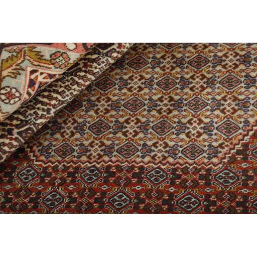 Seneh in Sanadaj is the capitol of the Kurdistan province of north-western Iran, and has about 300.000 inhabitants, most of them Kurds from the Gurani Tribe. Seneh rugs are easily recognisable by their knotting method, as well as the pattern colours and wool used. They usually have a simple weft, and the back of the rugs is often coarse and grainy, as the wool is spun tightly by hand before the knotting. Sometimes, a firm Bidjar-like knotting can be seen. Characteristically, the colours are deep blue, green, dark red, and white. Seneh wool is among the best qualities of wool in Iran: firm and durable, with a deep glow, a result of the high altitude, the sparse vegetation, and extremes in temperature. The tribal knotters in the area use the same type of wool. In the 19th century, Seneh rugs were famous for their fineness and the variation in patterns, while the modern production is less fine and not as varied. The Ghiordis knot is usually used, but you will also encounter rugs from Seneh with the Seneh knot. The typical Seneh rug has a Herati pattern field, with a series of geometrical medallions, one inside the other, each repeating the pattern with a different ground colour. Sometimes, the older, more uniform patterns are seen: Boteh, Vekili, Gol-Farang (naturalistic, European style bundles of flowers) or Gol-i-Bulbul (birds and flowers).