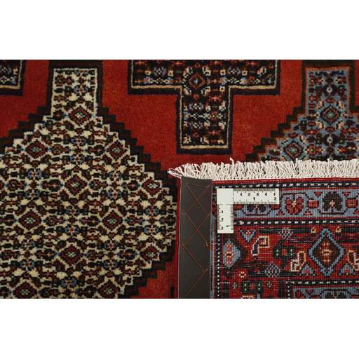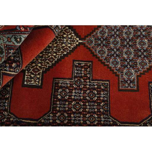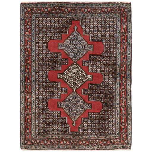 Seneh in Sanadaj is the capitol of the Kurdistan province of north-western Iran, and has about 300.000 inhabitants, most of them Kurds from the Gurani Tribe. Seneh rugs are easily recognisable by their knotting method, as well as the pattern colours and wool used. They usually have a simple weft, and the back of the rugs is often coarse and grainy, as the wool is spun tightly by hand before the knotting. Sometimes, a firm Bidjar-like knotting can be seen. Characteristically, the colours are deep blue, green, dark red, and white. Seneh wool is among the best qualities of wool in Iran: firm and durable, with a deep glow, a result of the high altitude, the sparse vegetation, and extremes in temperature. The tribal knotters in the area use the same type of wool. In the 19th century, Seneh rugs were famous for their fineness and the variation in patterns, while the modern production is less fine and not as varied. The Ghiordis knot is usually used, but you will also encounter rugs from Seneh with the Seneh knot. The typical Seneh rug has a Herati pattern field, with a series of geometrical medallions, one inside the other, each repeating the pattern with a different ground colour. Sometimes, the older, more uniform patterns are seen: Boteh, Vekili, Gol-Farang (naturalistic, European style bundles of flowers) or Gol-i-Bulbul (birds and flowers).