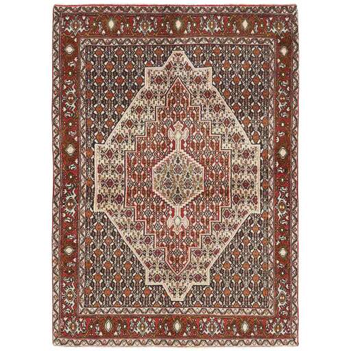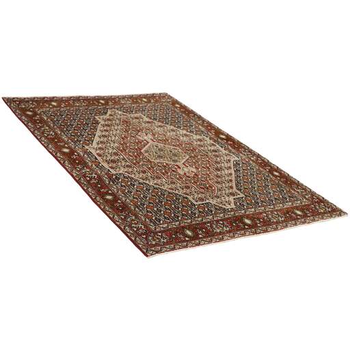 Seneh in Sanadaj is the capitol of the Kurdistan province of north-western Iran, and has about 300.000 inhabitants, most of them Kurds from the Gurani Tribe. Seneh rugs are easily recognisable by their knotting method, as well as the pattern colours and wool used. They usually have a simple weft, and the back of the rugs is often coarse and grainy, as the wool is spun tightly by hand before the knotting. Sometimes, a firm Bidjar-like knotting can be seen. Characteristically, the colours are deep blue, green, dark red, and white. Seneh wool is among the best qualities of wool in Iran: firm and durable, with a deep glow, a result of the high altitude, the sparse vegetation, and extremes in temperature. The tribal knotters in the area use the same type of wool. In the 19th century, Seneh rugs were famous for their fineness and the variation in patterns, while the modern production is less fine and not as varied. The Ghiordis knot is usually used, but you will also encounter rugs from Seneh with the Seneh knot. The typical Seneh rug has a Herati pattern field, with a series of geometrical medallions, one inside the other, each repeating the pattern with a different ground colour. Sometimes, the older, more uniform patterns are seen: Boteh, Vekili, Gol-Farang (naturalistic, European style bundles of flowers) or Gol-i-Bulbul (birds and flowers).