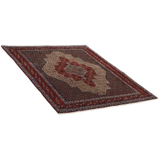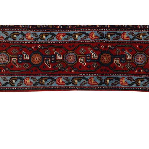 Seneh in Sanadaj is the capitol of the Kurdistan province of north-western Iran, and has about 300.000 inhabitants, most of them Kurds from the Gurani Tribe. Seneh rugs are easily recognisable by their knotting method, as well as the pattern colours and wool used. They usually have a simple weft, and the back of the rugs is often coarse and grainy, as the wool is spun tightly by hand before the knotting. Sometimes, a firm Bidjar-like knotting can be seen. Characteristically, the colours are deep blue, green, dark red, and white. Seneh wool is among the best qualities of wool in Iran: firm and durable, with a deep glow, a result of the high altitude, the sparse vegetation, and extremes in temperature. The tribal knotters in the area use the same type of wool. In the 19th century, Seneh rugs were famous for their fineness and the variation in patterns, while the modern production is less fine and not as varied. The Ghiordis knot is usually used, but you will also encounter rugs from Seneh with the Seneh knot. The typical Seneh rug has a Herati pattern field, with a series of geometrical medallions, one inside the other, each repeating the pattern with a different ground colour. Sometimes, the older, more uniform patterns are seen: Boteh, Vekili, Gol-Farang (naturalistic, European style bundles of flowers) or Gol-i-Bulbul (birds and flowers).
