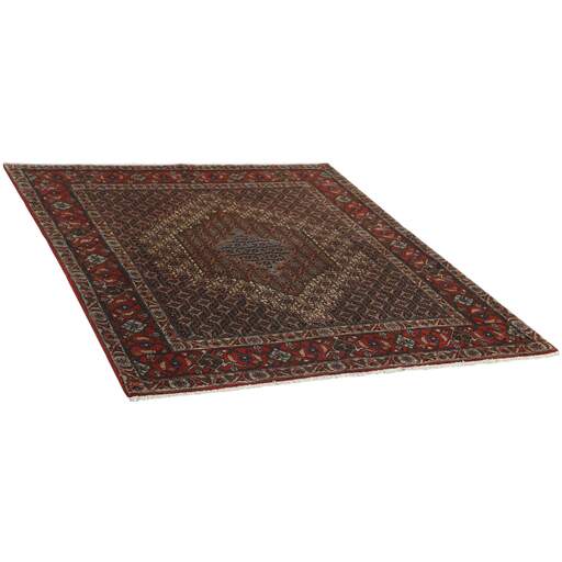 Seneh in Sanadaj is the capitol of the Kurdistan province of north-western Iran, and has about 300.000 inhabitants, most of them Kurds from the Gurani Tribe. Seneh rugs are easily recognisable by their knotting method, as well as the pattern colours and wool used. They usually have a simple weft, and the back of the rugs is often coarse and grainy, as the wool is spun tightly by hand before the knotting. Sometimes, a firm Bidjar-like knotting can be seen. Characteristically, the colours are deep blue, green, dark red, and white. Seneh wool is among the best qualities of wool in Iran: firm and durable, with a deep glow, a result of the high altitude, the sparse vegetation, and extremes in temperature. The tribal knotters in the area use the same type of wool. In the 19th century, Seneh rugs were famous for their fineness and the variation in patterns, while the modern production is less fine and not as varied. The Ghiordis knot is usually used, but you will also encounter rugs from Seneh with the Seneh knot. The typical Seneh rug has a Herati pattern field, with a series of geometrical medallions, one inside the other, each repeating the pattern with a different ground colour. Sometimes, the older, more uniform patterns are seen: Boteh, Vekili, Gol-Farang (naturalistic, European style bundles of flowers) or Gol-i-Bulbul (birds and flowers).
