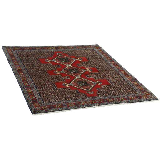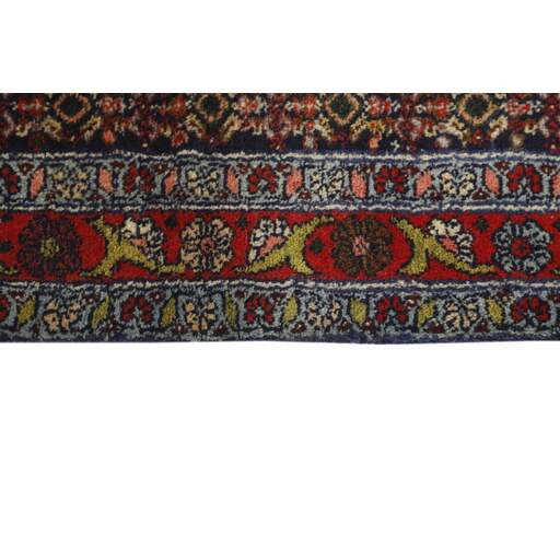 Seneh in Sanadaj is the capitol of the Kurdistan province of north-western Iran, and has about 300.000 inhabitants, most of them Kurds from the Gurani Tribe. Seneh rugs are easily recognisable by their knotting method, as well as the pattern colours and wool used. They usually have a simple weft, and the back of the rugs is often coarse and grainy, as the wool is spun tightly by hand before the knotting. Sometimes, a firm Bidjar-like knotting can be seen. Characteristically, the colours are deep blue, green, dark red, and white. Seneh wool is among the best qualities of wool in Iran: firm and durable, with a deep glow, a result of the high altitude, the sparse vegetation, and extremes in temperature. The tribal knotters in the area use the same type of wool. In the 19th century, Seneh rugs were famous for their fineness and the variation in patterns, while the modern production is less fine and not as varied. The Ghiordis knot is usually used, but you will also encounter rugs from Seneh with the Seneh knot. The typical Seneh rug has a Herati pattern field, with a series of geometrical medallions, one inside the other, each repeating the pattern with a different ground colour. Sometimes, the older, more uniform patterns are seen: Boteh, Vekili, Gol-Farang (naturalistic, European style bundles of flowers) or Gol-i-Bulbul (birds and flowers).