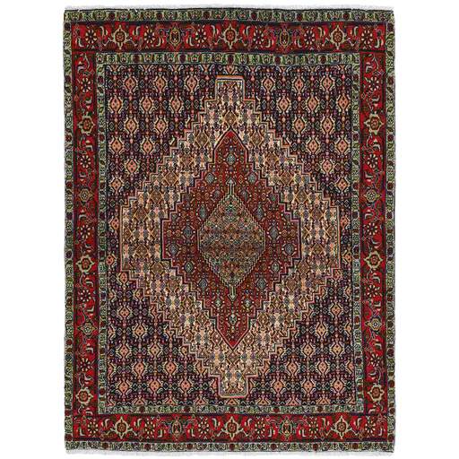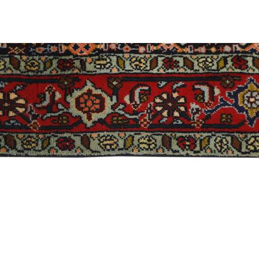 Seneh in Sanadaj is the capitol of the Kurdistan province of north-western Iran, and has about 300.000 inhabitants, most of them Kurds from the Gurani Tribe. Seneh rugs are easily recognisable by their knotting method, as well as the pattern colours and wool used. They usually have a simple weft, and the back of the rugs is often coarse and grainy, as the wool is spun tightly by hand before the knotting. Sometimes, a firm Bidjar-like knotting can be seen. Characteristically, the colours are deep blue, green, dark red, and white. Seneh wool is among the best qualities of wool in Iran: firm and durable, with a deep glow, a result of the high altitude, the sparse vegetation, and extremes in temperature. The tribal knotters in the area use the same type of wool. In the 19th century, Seneh rugs were famous for their fineness and the variation in patterns, while the modern production is less fine and not as varied. The Ghiordis knot is usually used, but you will also encounter rugs from Seneh with the Seneh knot. The typical Seneh rug has a Herati pattern field, with a series of geometrical medallions, one inside the other, each repeating the pattern with a different ground colour. Sometimes, the older, more uniform patterns are seen: Boteh, Vekili, Gol-Farang (naturalistic, European style bundles of flowers) or Gol-i-Bulbul (birds and flowers).