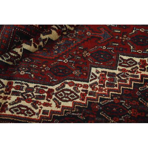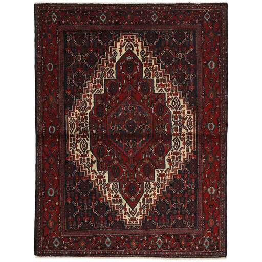 Seneh in Sanadaj is the capitol of the Kurdistan province of north-western Iran, and has about 300.000 inhabitants, most of them Kurds from the Gurani Tribe. Seneh rugs are easily recognisable by their knotting method, as well as the pattern colours and wool used. They usually have a simple weft, and the back of the rugs is often coarse and grainy, as the wool is spun tightly by hand before the knotting. Sometimes, a firm Bidjar-like knotting can be seen. Characteristically, the colours are deep blue, green, dark red, and white. Seneh wool is among the best qualities of wool in Iran: firm and durable, with a deep glow, a result of the high altitude, the sparse vegetation, and extremes in temperature. The tribal knotters in the area use the same type of wool. In the 19th century, Seneh rugs were famous for their fineness and the variation in patterns, while the modern production is less fine and not as varied. The Ghiordis knot is usually used, but you will also encounter rugs from Seneh with the Seneh knot. The typical Seneh rug has a Herati pattern field, with a series of geometrical medallions, one inside the other, each repeating the pattern with a different ground colour. Sometimes, the older, more uniform patterns are seen: Boteh, Vekili, Gol-Farang (naturalistic, European style bundles of flowers) or Gol-i-Bulbul (birds and flowers).