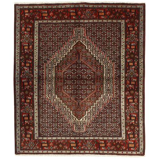 Seneh in Sanadaj is the capitol of the Kurdistan province of north-western Iran, and has about 300.000 inhabitants, most of them Kurds from the Gurani Tribe. Seneh rugs are easily recognisable by their knotting method, as well as the pattern colours and wool used. They usually have a simple weft, and the back of the rugs is often coarse and grainy, as the wool is spun tightly by hand before the knotting. Sometimes, a firm Bidjar-like knotting can be seen. Characteristically, the colours are deep blue, green, dark red, and white. Seneh wool is among the best qualities of wool in Iran: firm and durable, with a deep glow, a result of the high altitude, the sparse vegetation, and extremes in temperature. The tribal knotters in the area use the same type of wool. In the 19th century, Seneh rugs were famous for their fineness and the variation in patterns, while the modern production is less fine and not as varied. The Ghiordis knot is usually used, but you will also encounter rugs from Seneh with the Seneh knot. The typical Seneh rug has a Herati pattern field, with a series of geometrical medallions, one inside the other, each repeating the pattern with a different ground colour. Sometimes, the older, more uniform patterns are seen: Boteh, Vekili, Gol-Farang (naturalistic, European style bundles of flowers) or Gol-i-Bulbul (birds and flowers).